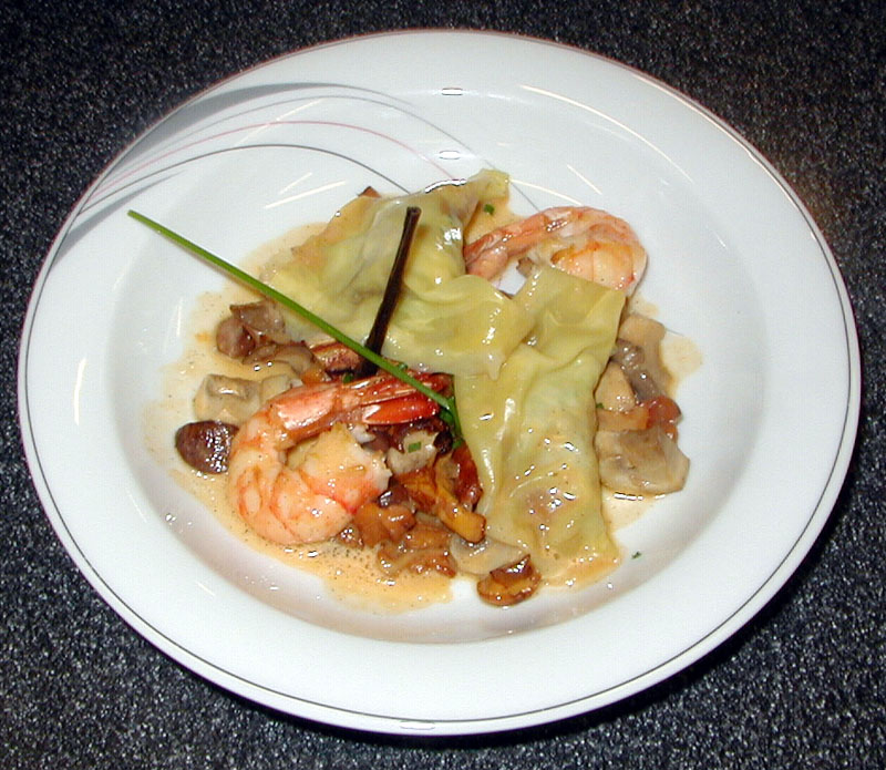 Raviolis aux crevettes et aux champignons