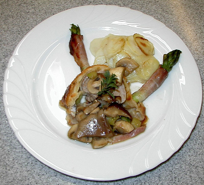 champignons et asperges, sauce cognac