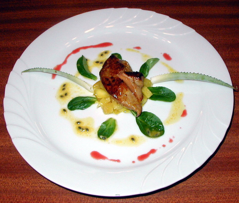 confits au poivre, vinaigrette aux fruits de la passion