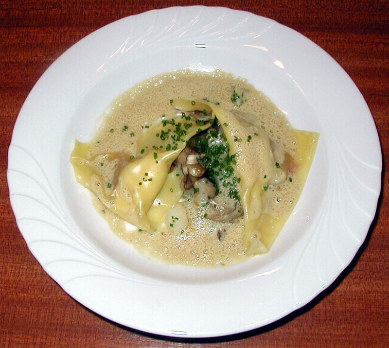 Ravioles de magret fumé et de foie gras,